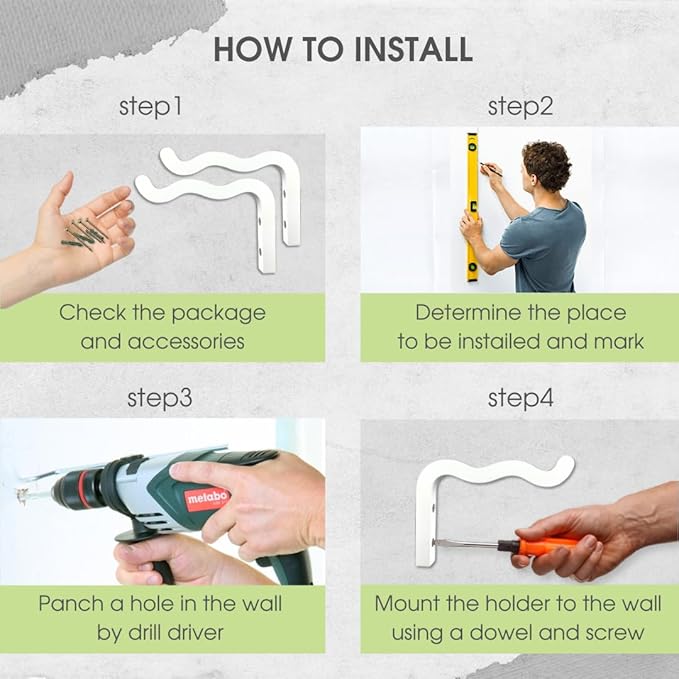 • EASY INSTALLATION: With the included hardware and easy straightforward instructions, mounting our plant hanging bracket for wall is a breeze. Our hook for plants comes come with 2 hooks, 4 screws, 4 dowels and 4 self-adhesive screw covers for installation.
