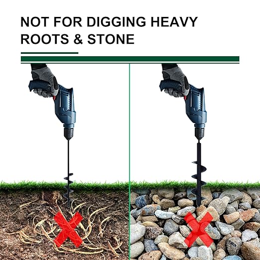 • 【Easier to Use - For 3/8'' Hex Drill Driver】- Enjoy the easy installation! Just insert the auger drill bit into the hex drill driver, tighten it, and rotate it to remove the soil. Repeat drilling until the desired planting depth is achieved. 18V or greater drill recommended. When idle, keep the auger clean and free of soil & debris to prevent oxidation.