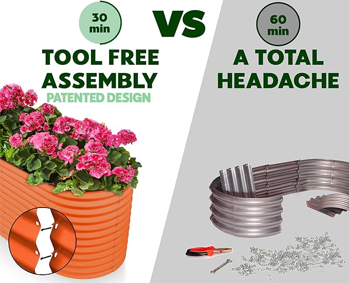 • EFFORTLESS ASSEMBLY, LIKE NO OTHER! Begin your planting journey by choosing our innovative patent-pending design, featuring the perfect combination of easy assembly and durability. Thanks to our unique tool-free design, assembly is a breeze and can be completed in just 30 minutes! Get started on your garden right away and enjoy fresh, healthy produce in no time.