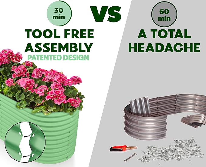 • EFFORTLESS ASSEMBLY, LIKE NO OTHER! Begin your planting journey by choosing our innovative patented design, featuring the perfect combination of easy assembly and durability. Thanks to our unique tool-free design, assembly is a breeze and can be completed in just 30 minutes! Get started on your garden right away and enjoy fresh, healthy produce in no time.