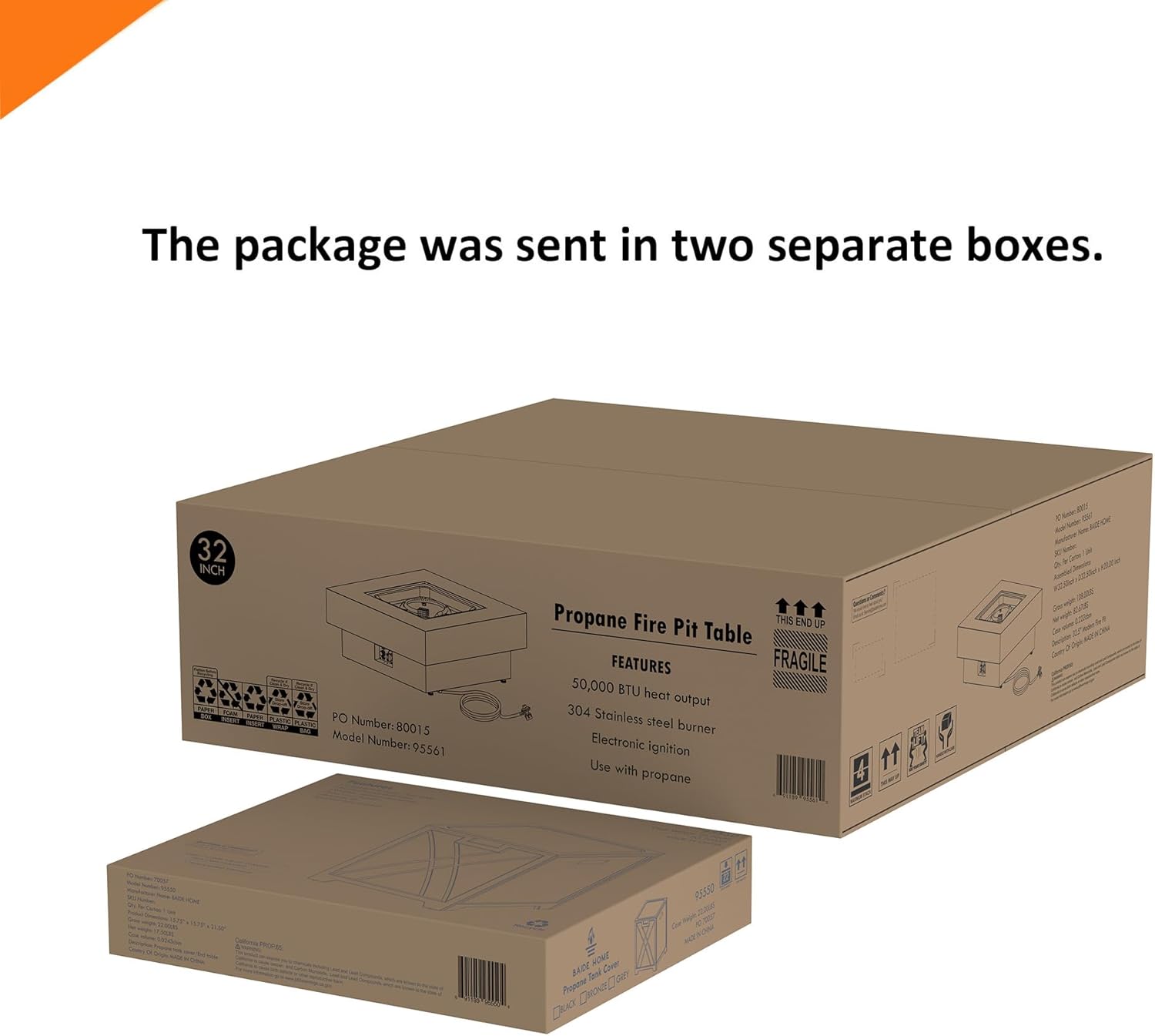 • Comes with a propane tank cover for a 20 lb tank (Color: Black /Carbon Gray), which will be shipped separately. We shipped the package in two separate boxes, It is possible that one package will arrive before the other.