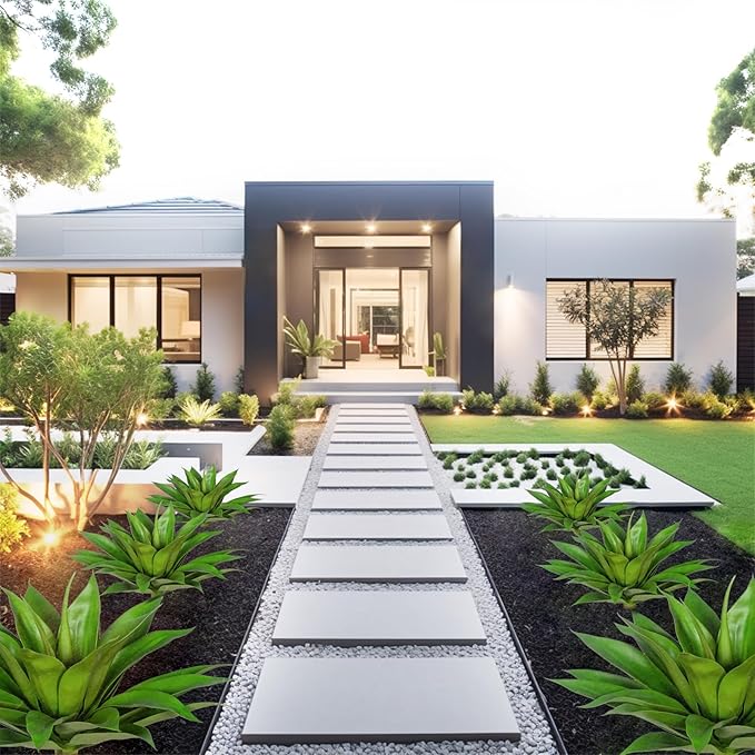 • About The Large Fake Plants Color: natural green, replica of the real agave color, delicate and durable, outdoor sun protection.Low Maintenance Unlike real plants, these artificial agave planters require no watering, pruning, or fertilizing. faux succulent outdoor plant enjoy the beauty of greenery without the hassle of maintenance.