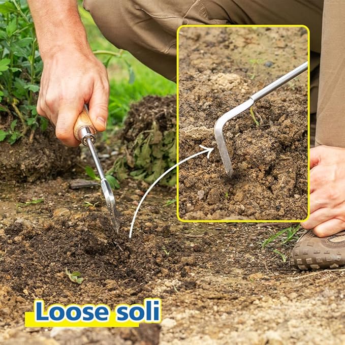 • Versatile Garden Hook Tool: Not only perfect for weeding, but this tool also excels in cultivating loose soil, can plow though any soil, making it a versatile addition to your gardening toolkit.