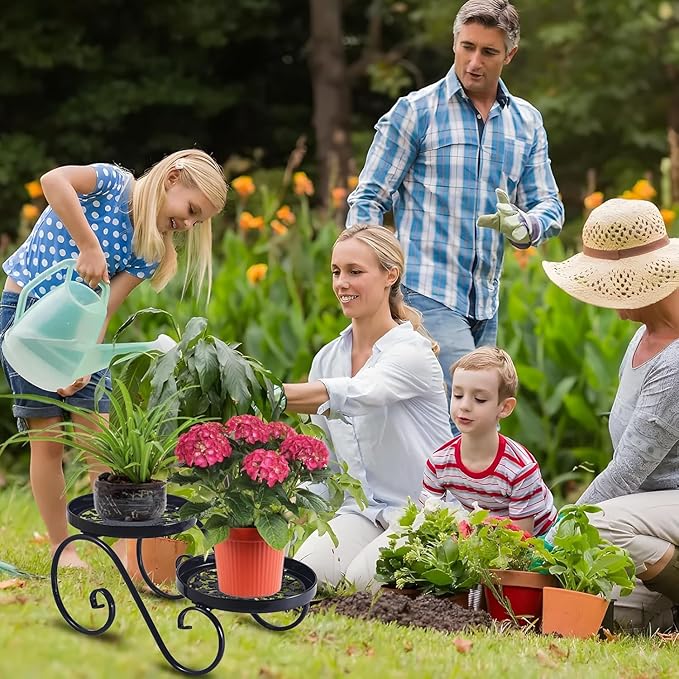 • Unique Design: Metal plant stands indoor. The S-shaped curved support frame and the disc with exquisite hollow pattern design are stable and full of simple retro and modern style. Use the 2 Tier tray to decorate the potted plants, plant rack makes your home full of nature, fashion, warmth and elegance.For storage or decor