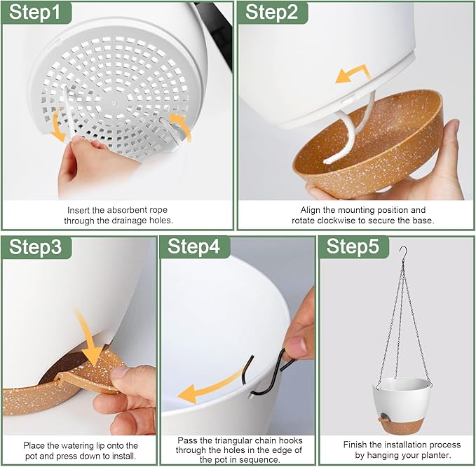 • Self-Watering Planter: Water storage up to 7-10 days. Our hanging pots for plants indoor come equipped with a removable tray that doubles as a water reservoir, ensuring your plants are watered for up to two weeks while you are away.
