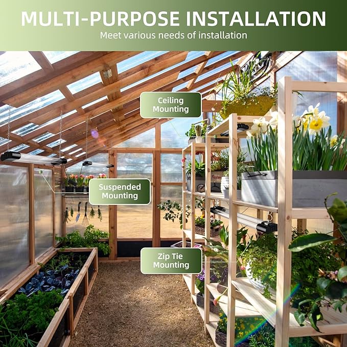 • [Easy Installation & Safe]: These grow lights can be installed in a variety of ways to meet the needs of various installation environments. Equipped with screws, hooks,chains, zip ties and brackets.