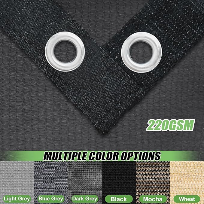 • [Durable & High Breathability] Pergola Shade Cover is made of 200 GSM HDPE with knitted construction, abrasion and tear resistant. Mesh Tarp ensures air circulation, dries quickly after being wetted by rain, no special drying or maintenance required, making it ideal for long-term outdoor use.