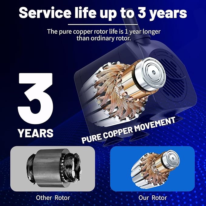 • 【Over Heating Protection】Considering that the users will forget to add water, we have added a temperature control protection switch inside the pump. When the pump is running-dry, it will automatically cut off the power when the temperature of pump is high,360-hour dry burnning protection,Don't worry that there is no water in your fountain, which will cause the pump to burn out.