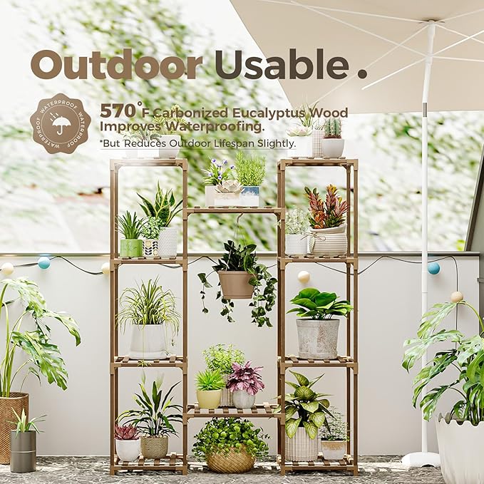 • Hanging Plant Shelf: bamworld's expanded design ensures easy accommodation for 10 pots,creating a spacious and cozy home for your grennery