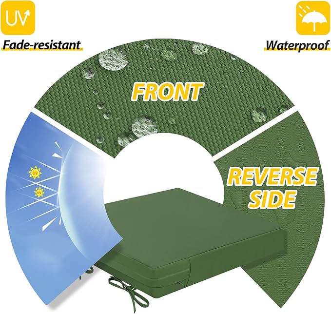 • Waterproof & Removable Cover: Durable, breathable polyester with a waterproof coating, UV protection, and fade resistance for lasting outdoor use. The zippered cover allows easy cleaning and replacement, with hidden zippers for a seamless look