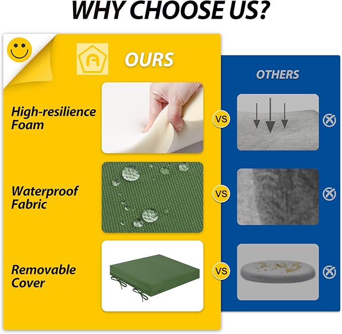 • Wide Use & Tips: These outdoor dining chair cushions fit pools, patios, balconies, decks, backyards, and gazebos. Foam inserts and covers are packed separately in bags and placed in one box—check all parts. Easy assembly required