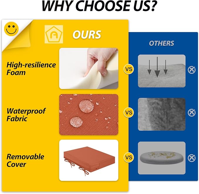• Wide Use & Tips: These outdoor dining chair cushions fit pools, patios, balconies, decks, backyards, and gazebos. Foam inserts and covers are packed separately in bags and placed in one box—check all parts. Easy assembly required