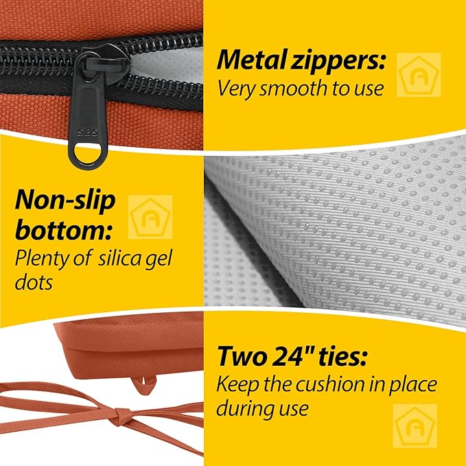• Non-slip Ties and Piped Edge: The two non-slip ties can be fastened to your furniture to keep the outdoor cushion in place