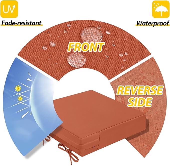 • Waterproof & Removable Cover: Durable, breathable polyester with a waterproof coating, UV protection, and fade resistance for lasting outdoor use. The zippered cover allows easy cleaning and replacement, with hidden zippers for a seamless look