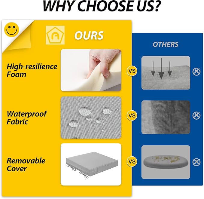 • Wide Use & Tips: These outdoor dining chair cushions fit pools, patios, balconies, decks, backyards, and gazebos. Foam inserts and covers are packed separately in bags and placed in one box—check all parts. Easy assembly required