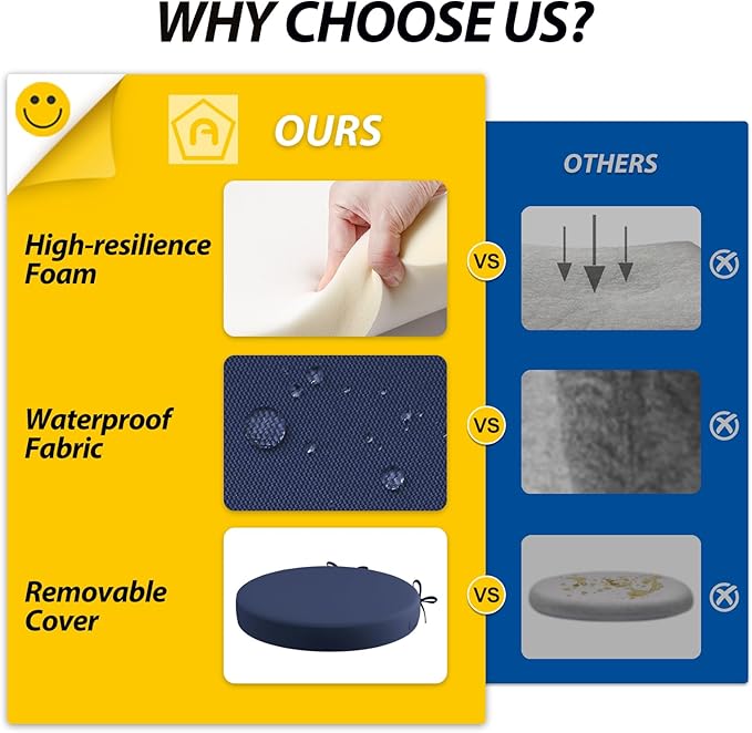 • About Size: 15×15×2 inches (tolerance: 0.5"). Measure your furniture before ordering. Cushions are compressed and may look bigger/thinner. Let them rebound for a few days or use a hair dryer to fluff faster