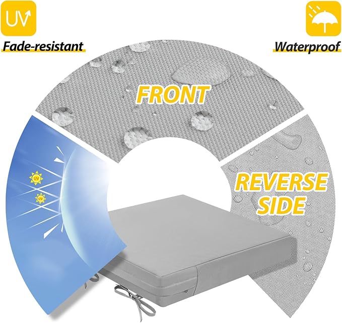 • Waterproof & Removable Cover: Durable, breathable polyester with a waterproof coating, UV protection, and fade resistance for lasting outdoor use. The zippered cover allows easy cleaning and replacement, with hidden zippers for a seamless look