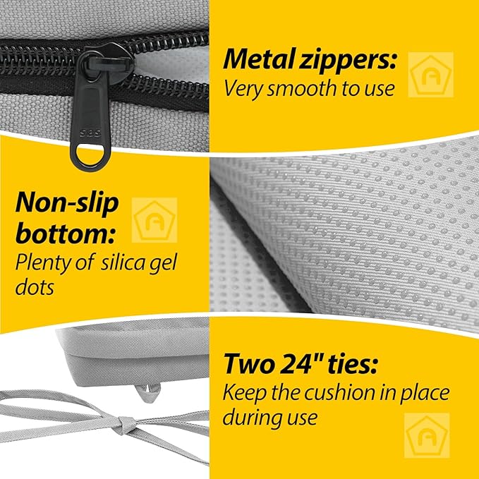 • Wide Use & Tips: These outdoor dining chair cushions fit pools, patios, balconies, decks, backyards, and gazebos. Foam inserts and covers are packed separately in bags and placed in one box—check all parts. Easy assembly required