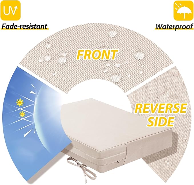 • Waterproof & Removable Cover: Durable, breathable polyester with a waterproof coating, UV protection, and fade resistance for lasting outdoor use. The zippered cover allows easy cleaning and replacement, with hidden zippers for a seamless look