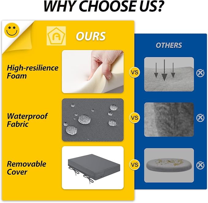 • Upgraded Cushion Foam: Thick, powder-free, high-resilience foam quickly regains shape after use, providing soft support and lasting comfort. It helps relieve pressure, enhances relaxation, and increases durability for long-term performance