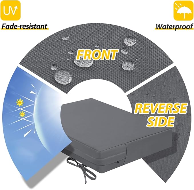 • Waterproof & Removable Cover: Durable, breathable polyester with a waterproof coating, UV protection, and fade resistance for lasting outdoor use. The zippered cover allows easy cleaning and replacement, with hidden zippers for a seamless look