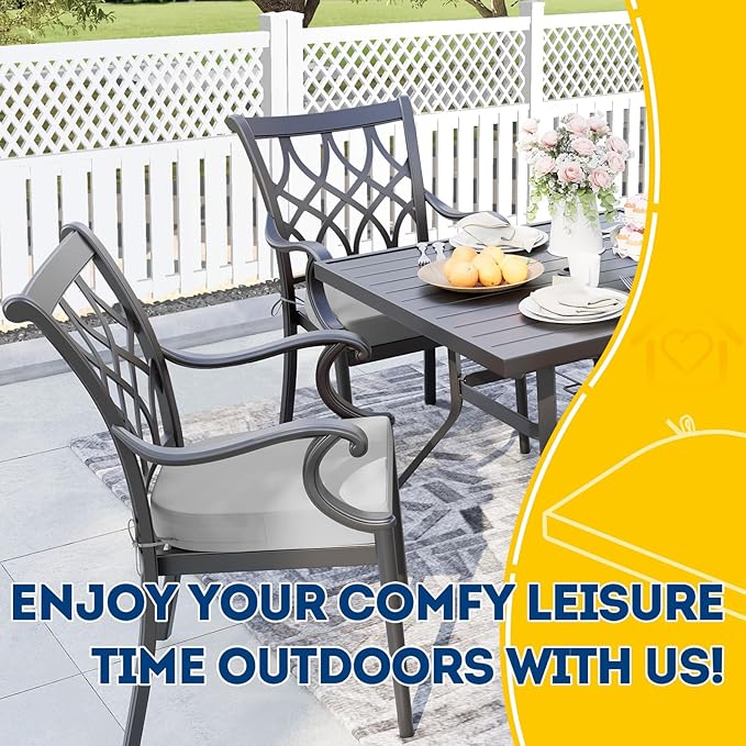 • Wide Use & Tips: These outdoor dining chair cushions fit pools, patios, balconies, decks, backyards, and gazebos. Foam inserts and covers are packed separately in bags and placed in one box—check all parts. Easy assembly required