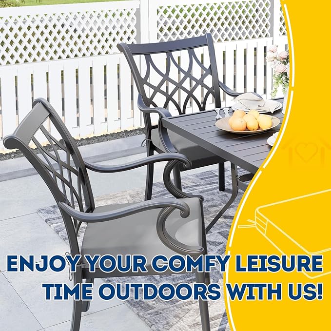 • Wide Use & Tips: These outdoor dining chair cushions fit pools, patios, balconies, decks, backyards, and gazebos. Foam inserts and covers are packed separately in bags and placed in one box—check all parts. Easy assembly required