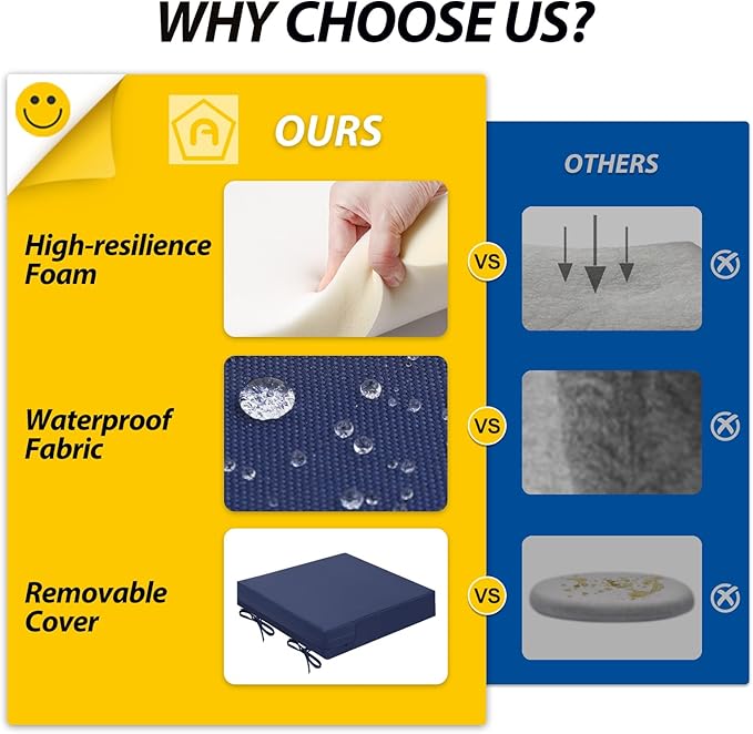 • Wide Use & Tips: These outdoor dining chair cushions fit pools, patios, balconies, decks, backyards, and gazebos. Foam inserts and covers are packed separately in bags and placed in one box—check all parts. Easy assembly required