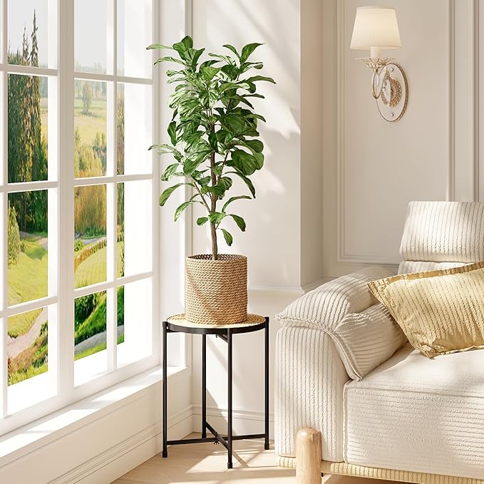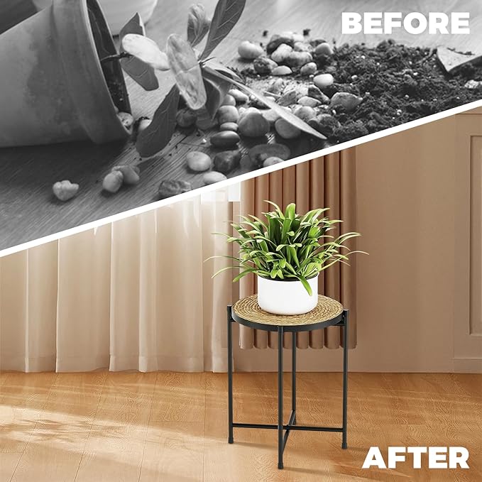 • Natural Material: This plant holder is made of iron, and the surface of the plant tray is made of natural straw plait. The boho plant stool will add vitality to your living space and bringing you a feeling of natural comfort.
