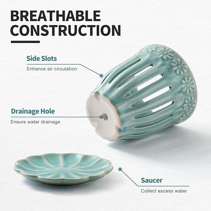 • 【Elegant Design】Unique carved patterns make this orchid pot stand out. Fully glazed with improved air circulation through aeration holes on the front and back.