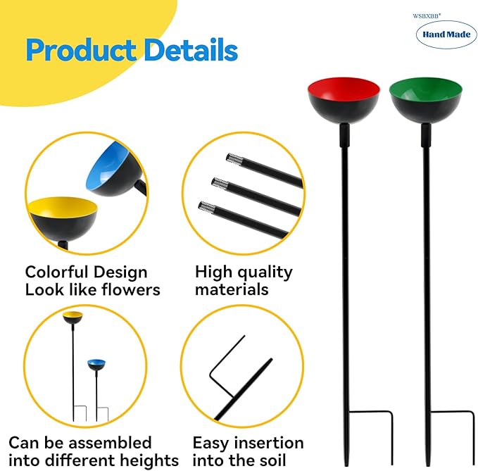 • 【Easy to Install】The set has 4 cups(Yellow & Blue & Green & Red), 25 inches tall, Which can be installed easily by pushing them into the ground to the desired height and form.