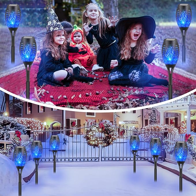 • Flickering Flame Torch Lights: FAISHILAN small blue solar outdoor torch lights cast a lovely warm glow resembling flickering flames, providing a safe alternative to real flames. These solar outdoor lights feature a soft, flame-like flicker, making them ideal for decorating patios, gardens, yards, porches, pools, as well as for parties, camping, barbecues, and weddings