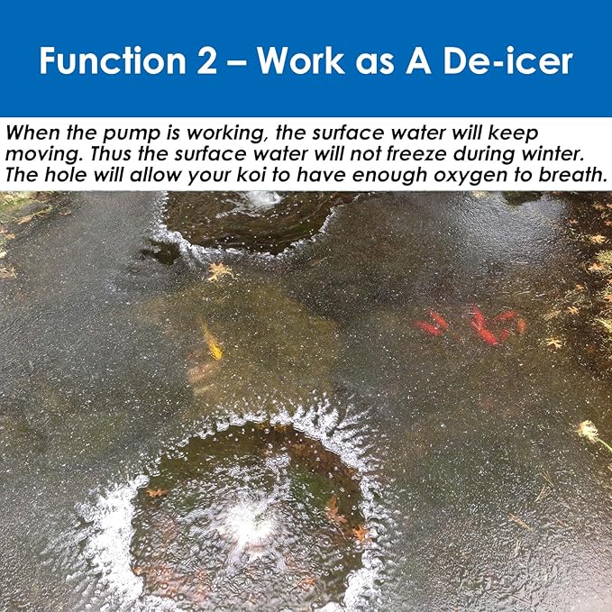 • DUAL-FUNCTIONAL - This pond air pump can not only work as a pond aerator, but also as a pond deicer in winter to leave a ventilation hole for your koi to breath!