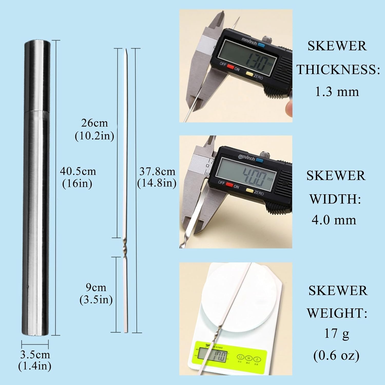 • ​【Ergonomic Handle Design and Easy for Storage】​These metal skewers come with an ergonomic handle design for comfortable grip, ensuring a non-slip and convenient barbecue experience. They are also designed for easy storage. Additionally, our kabob skewers for grilling come with a stainless steel storage tube, keeping the skewers dry and clean, making them easy to carry and store.