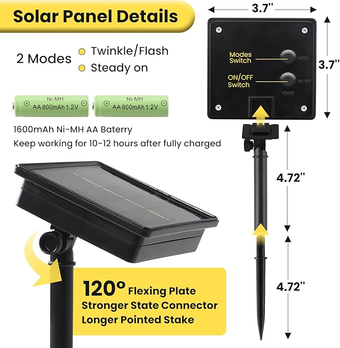 • 【Customizable Experience】Our outdoor string lights solar come equipped with a multifunctional battery box with 2 modes, allowing you to tailor the solar string light' ambiance from steady glow to mesmerizing flash. The solar light string' memory function conveniently saves your last setting, making these solar fairy lights outdoor ready to enchant without any hassle.