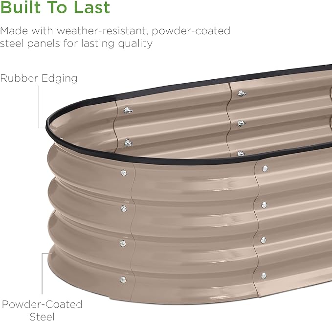 Best Choice Products 4x2x1ft Outdoor Metal Raised Garden Bed, Oval Deep Root Planter Box for Vegetables, Flowers, Herbs, and Succulents w/ 51 Gallon Capacity, Rubber Edge Guard - Taupe