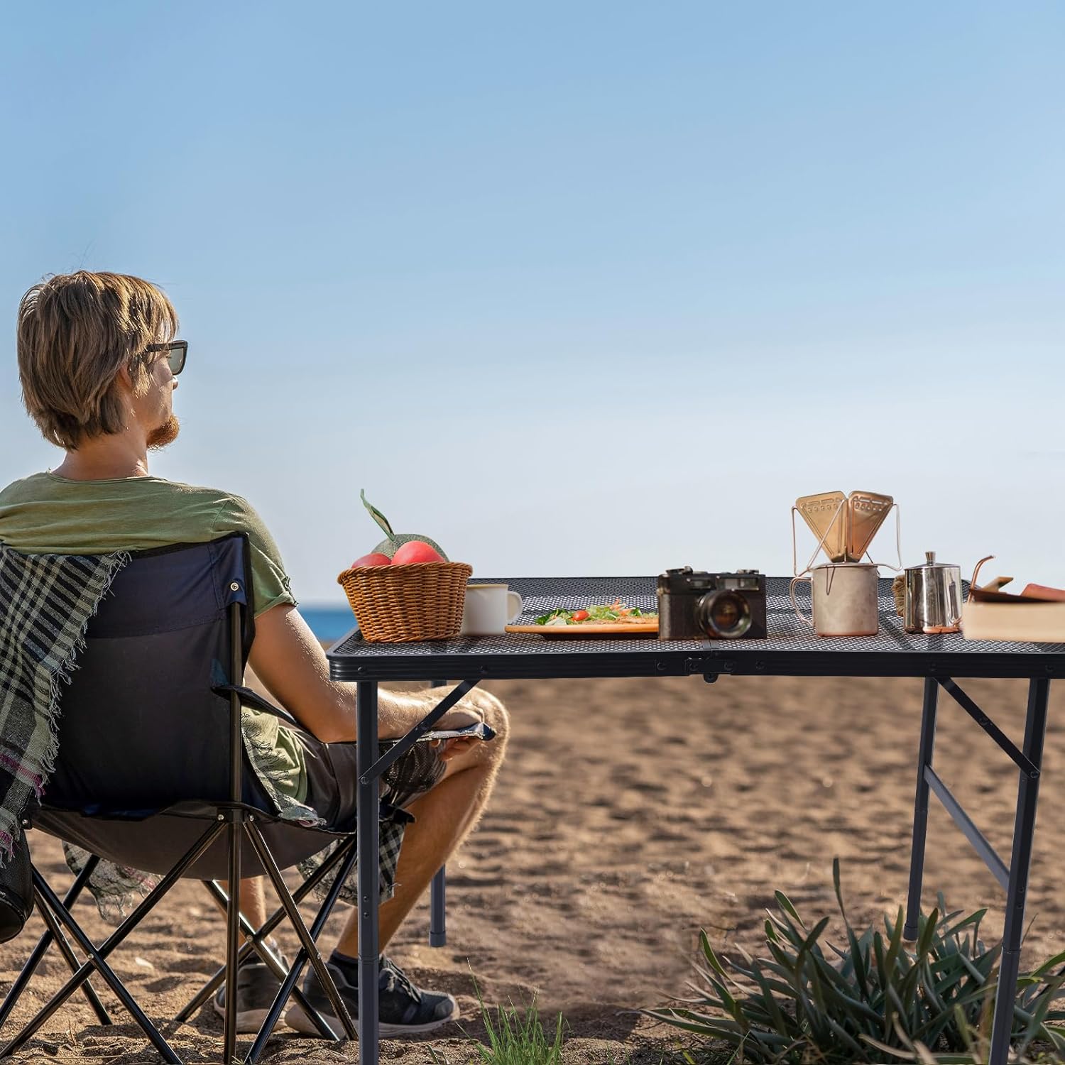 • Waterproof and heat resistant: Our camping table adopts a special coating metal mesh, which is waterproof and rust resistant. In addition, the metal mesh is made of a high temperature resistant material, the most suitable outdoor table for barbecue.