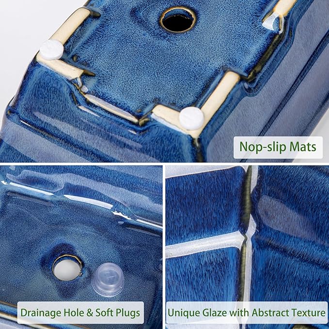 • 【Widely Application】Love the uniqueness of subtle blue glazes and somewhat mottled color form from iron within the clay body flows into and bonds with them, providing a pallet for smoother, cooler and more classic hues for multi-style decor. Excellent choice for living room, tabletop, windowsill, garden, patio, office or commercial place. Also this shallow bowl planter for indoor/outdoor plants makes a thoughtful and lasting gift to a plant lover