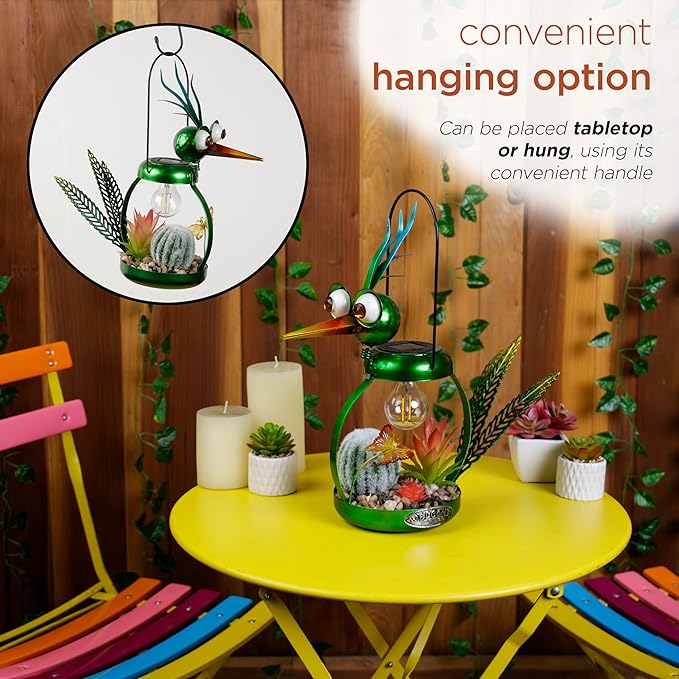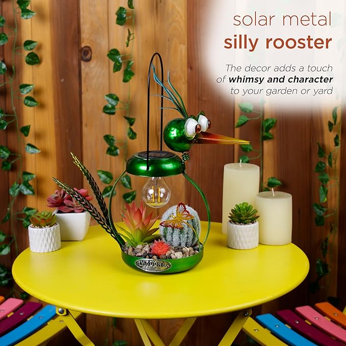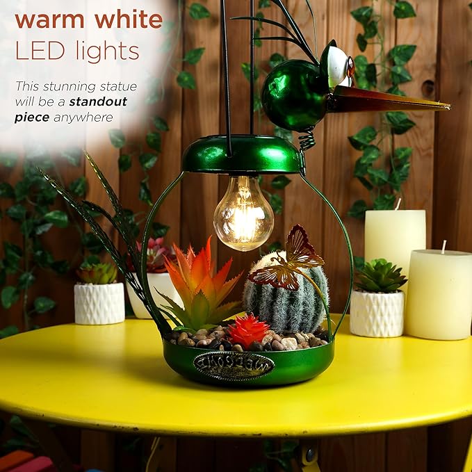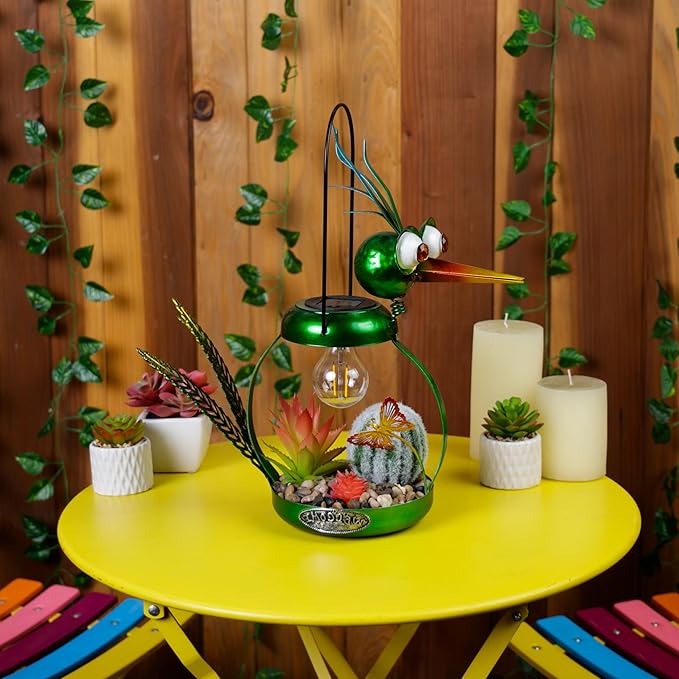 • PERFECT AND COMPACT SIZE: This iron bird lamp measures 16"L x 6"W x 16"H, making it the perfect addition to any flower bed or outdoor display