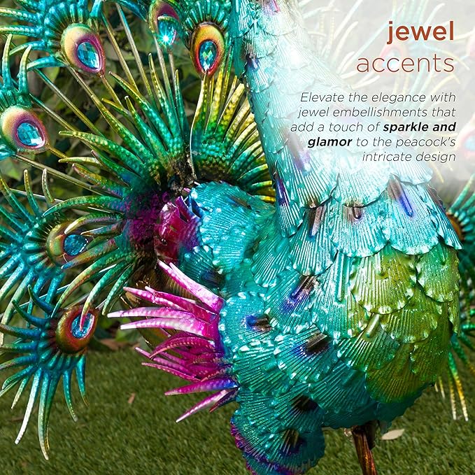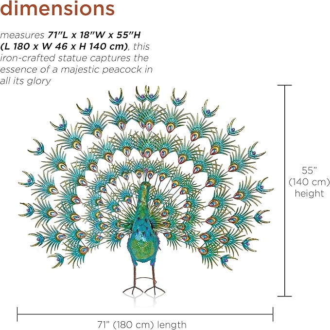 • STUNNING METAL PEACOCK STATUE: Bring an air of majesty to your space with this peacock statue, featuring its gorgeous feathers on full display