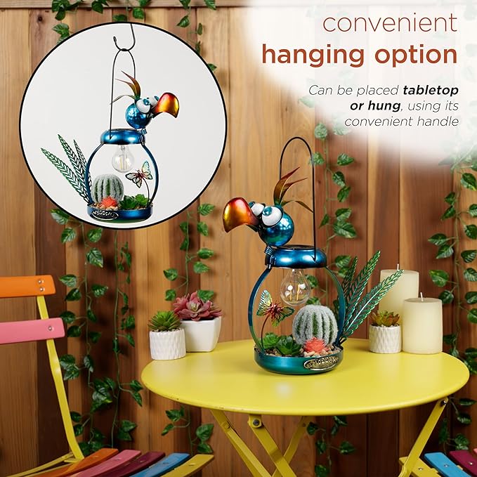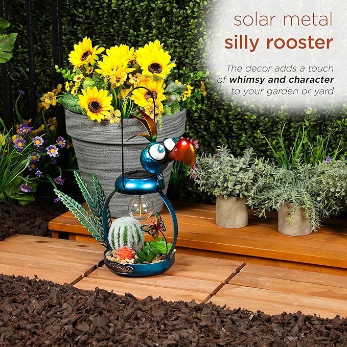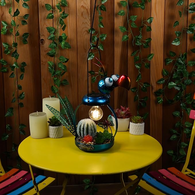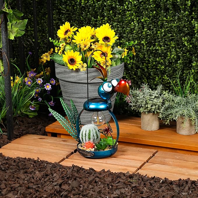 • PERFECT AND COMPACT SIZE: This iron bird lamp measures 16"L x 6"W x 16"H, making it the perfect addition to any flower bed or outdoor display