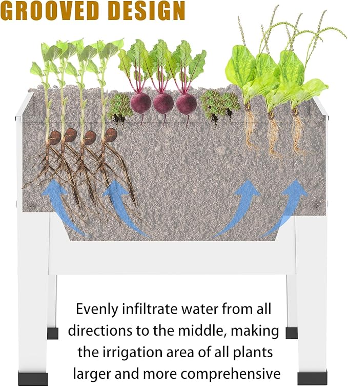 • IRRIGATION SYSTEM: The bottom of the raised garden bed has a middle groove type to allow water to penetrate evenly, ensuring that the plants get sufficient and reasonable watering.