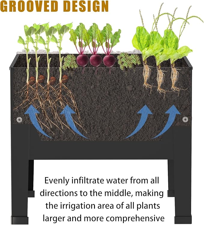 • IRRIGATION SYSTEM: The bottom of the raised garden bed has a middle groove type to allow water to penetrate evenly, ensuring that the plants get sufficient and reasonable watering.
