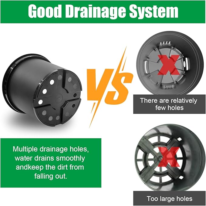 • Drainage Holes:Each pot has drainage holes to prevent water buildup that could cause root rot;helps maintain proper moisture levels for plant health