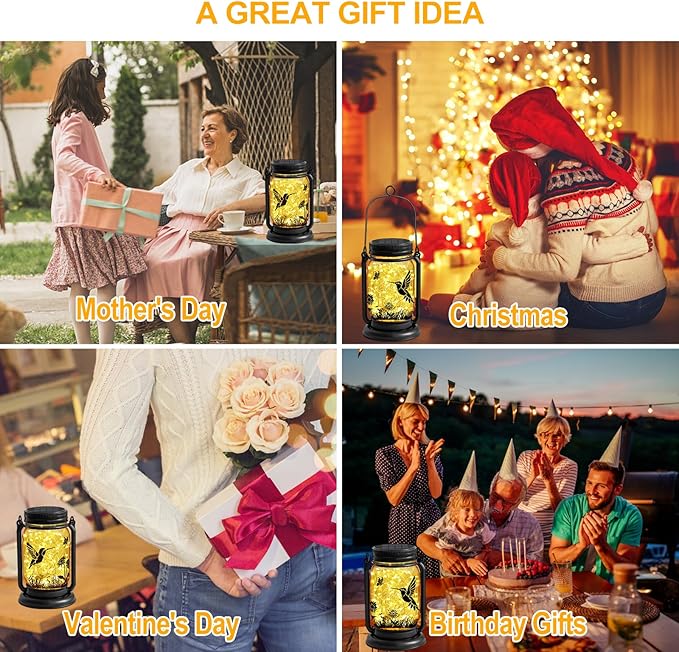 • Perfect Gift Option--This solar Hummingbird lantern garden decorative lights can be an amazing Birthday Mothers Day Gifts or DIY decoration in Christmas, Halloween, Mother's Day, Valentine's Day, birthday, wedding, also an gift ideal for garden-loving homemakers