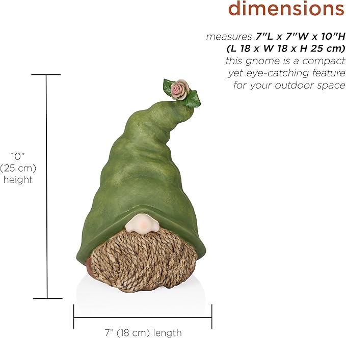 • PERFECT DIMENSIONS: With measurements of 7"L x 7"W x 10"H, this gnome head statuary is a compact yet eye-catching feature for your outdoor space