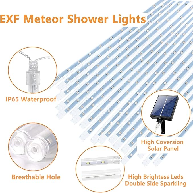 • IP65 Waterproof Solar Patriotic String Lights: These meteor lights are built to withstand all weather conditions, making them ideal for gardens, patios, or outdoor events, and durable enough for year-round use