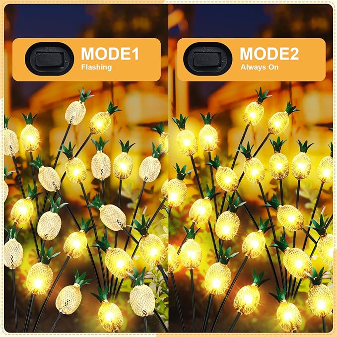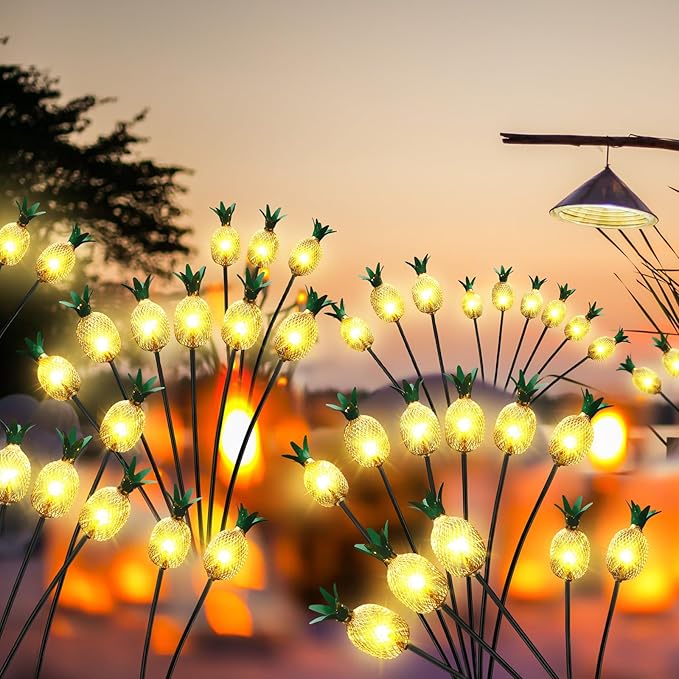 • 4 Sets Pineapple Patio Decorations: the set includes 4 pineapple shaped solar stake lights, each with 6 light heads inserted into the ground, emitting yellow colors, making your ideal decoration for the holidays bright and lively