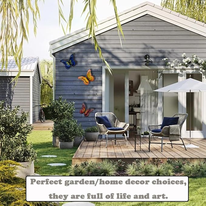 • UNIQUE DESIGN: We set double layer wings for the metal butterfly, not only the color is more eye-catching, but also increase the fun of the decoration process. You can adjust the curvature of the butterflies' wings according to your own preferences to make them more vivid in the garden
