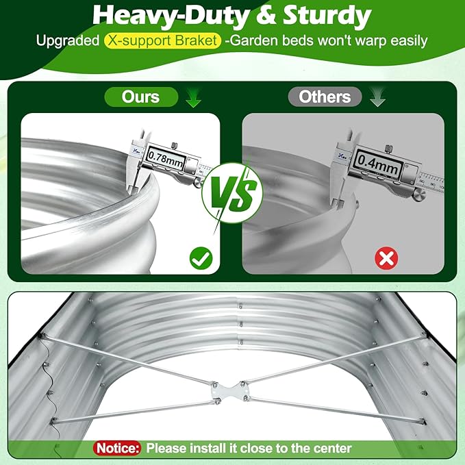 • Elaborately Designed For U: (1) X-shaped fixed rods provide added stability, preventing any deformation of the garden bed. (2) The open bottom facilitates drainage and promotes the exchange of organic matter, creating optimal growth conditions.